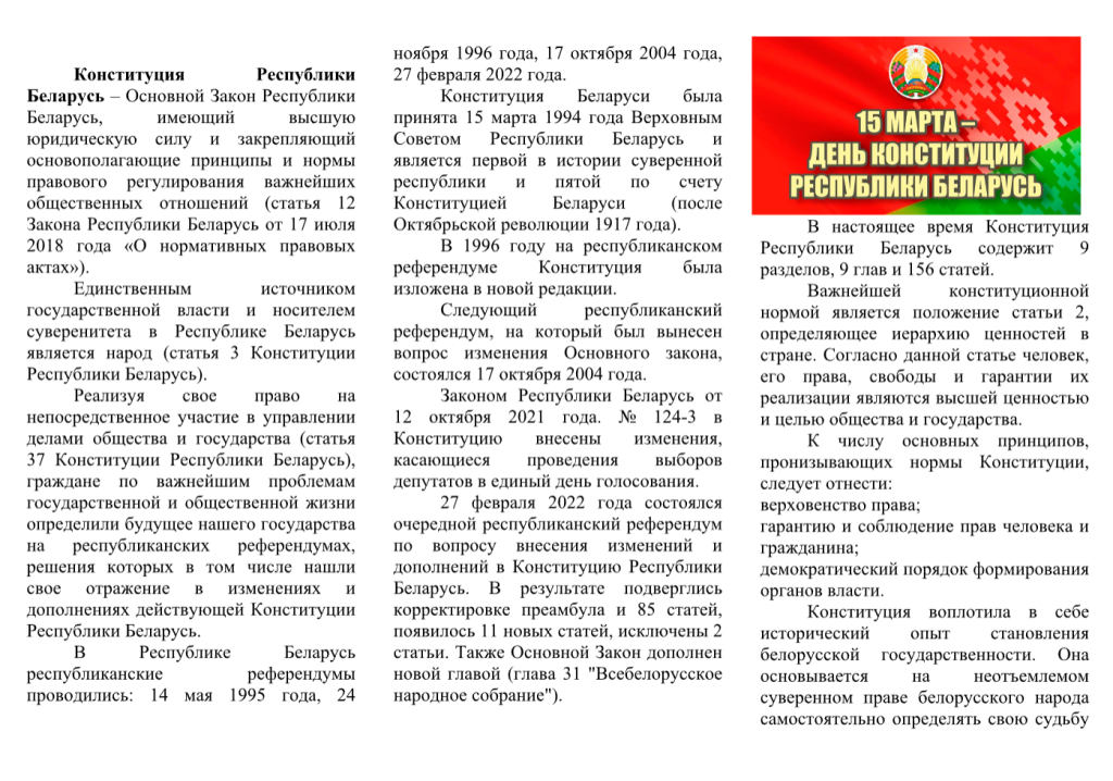 Буклет «Основной закон Республики Беларусь»