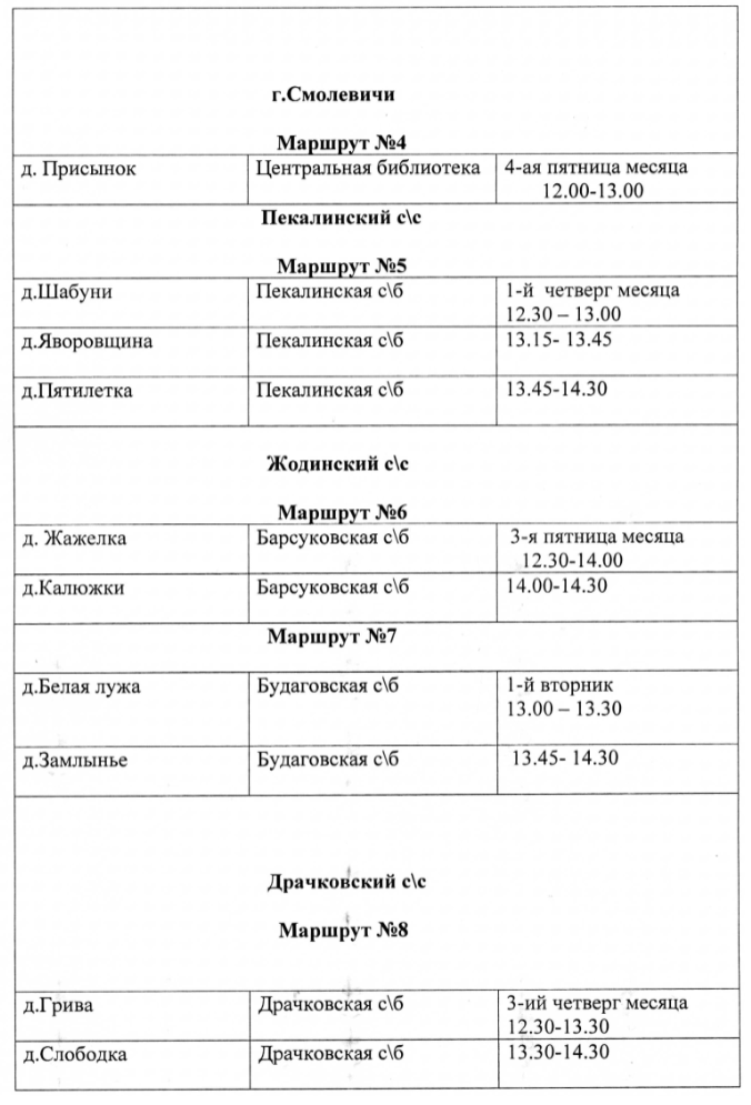 Карта публичных библиотек Смолевичского района