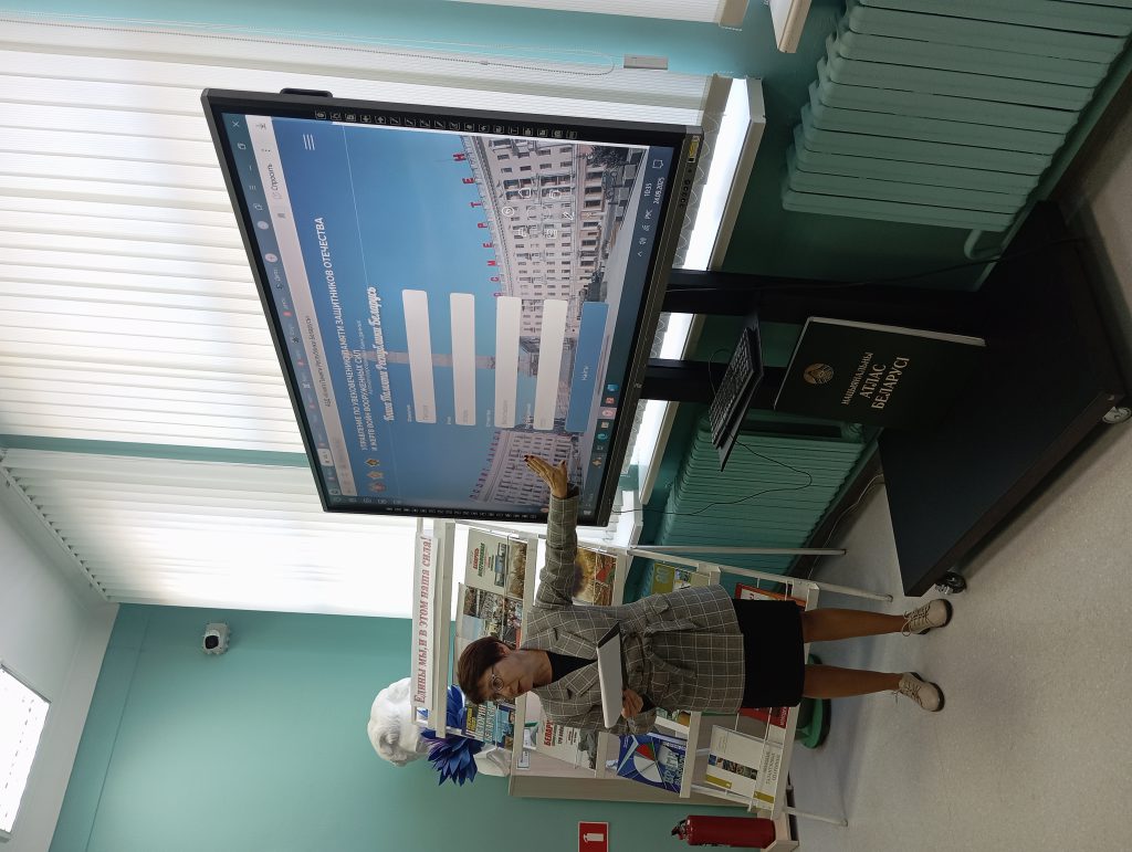 Толкач Татьяна, библиограф отдела обслуживания и информации, представила обзор интернет-ресурсов: автоматизированный банк данных «Книга памяти Республики Беларусь», проект «Подвиги и судьбы партизан в документах», виртуальный музей «Великой Отечественной войны», Детский правовой сайт.