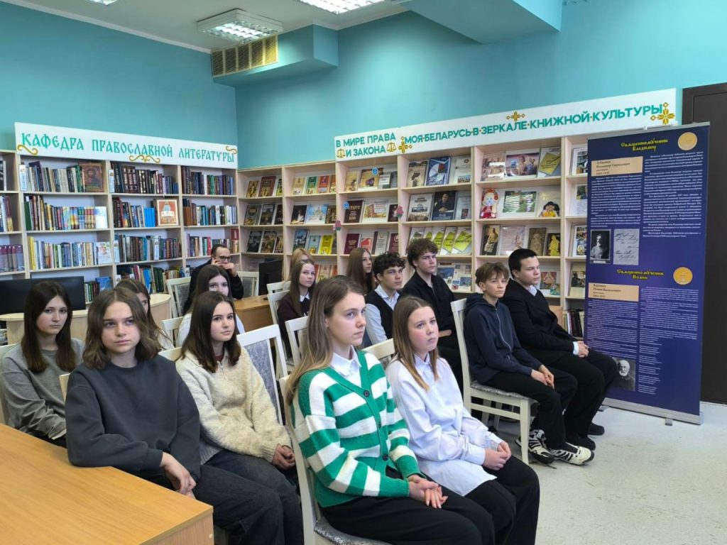 30 января сотрудник Центральной районной библиотеки имени Максима Богдановича Коношонок Анна совместно с настоятелем храма Святителя Николая Чудотворца г. Смолевичи иереем Николаем Бондарем провели час православия «Жития святых великомучеников Смолевиччины» для учащихся 8 «Д» класса ГУО «Гимназия имени В. Ф. Купревича г. Смолевичи», в рамках программы «Библиотека и церковь: диалог во имя культуры и духовности». В ходе встречи учащиеся познакомились с понятием «великомученик» и узнали о Житиях – книгах, в которых сохранились истории этих святых. Особое внимание отец Николай уделил великомученикам, связанным со Смолевиччиной. Завершилась беседа живым диалогом: настоятель храма ответил на вопросы ребят о своём духовном пути, учёбе и опыте служения в различных приходах.